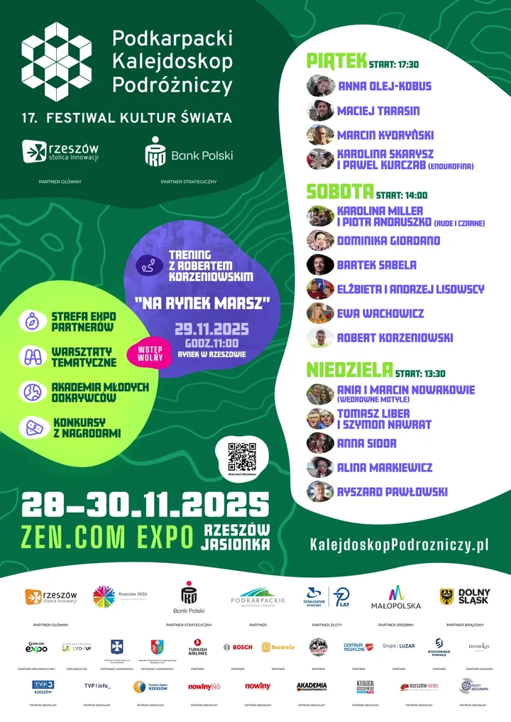 W sobotę z kolei festiwal wyjdzie na ulice. Punkt godzina 11:00, Rynek w Rzeszowie – wspólny marsz i trening poprowadzi Robert Korzeniowski razem z Prezydentem Konradem Fijołkiem. To nie tylko akcja promująca aktywny tryb życia, ale symboliczne przejście od słów do czynów – bo każda podróż, nawet ta największa, zaczyna się od ruchu.