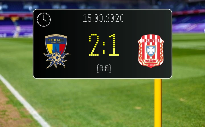 Podhale Nowy Targ – Resovia Rzeszów 2:1. Jako goście z Rzeszowa wróciliśmy do domu ze złamanymi sercami — gospodarze wygrali po dramatycznej końcówce, a zwycięska bramka padła w ostatniej akcji meczu.